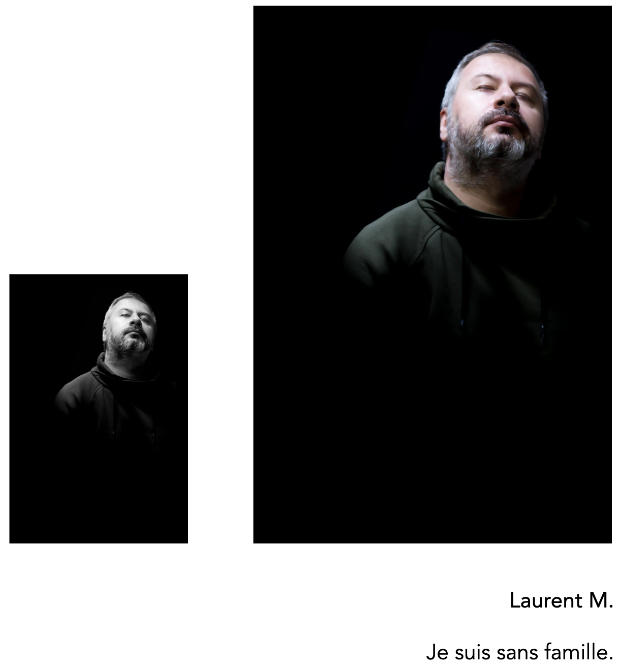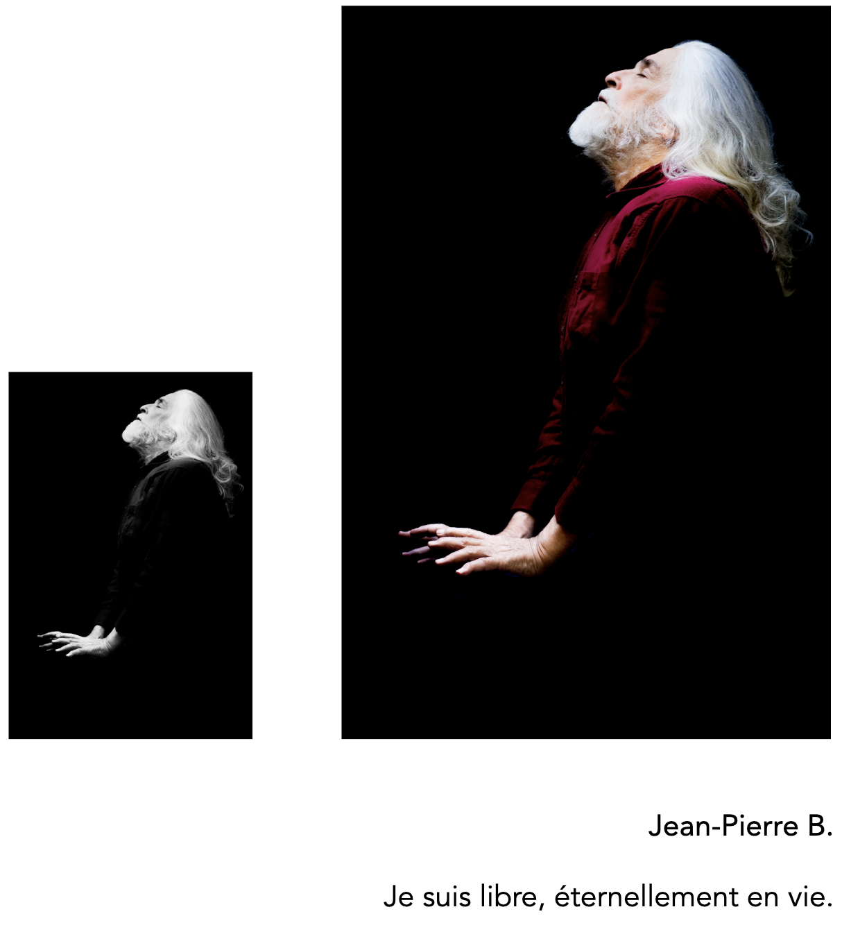 Les douze portraits exposés ont été publiés uniquement en noir et blanc, dans le livre COMAS, théâtre suivi de UN PARFUM DANS LA NUIT, récit poétique et LES BEAUX ENDORMIS, série photo (Éditions L’Écarlate, 2022).