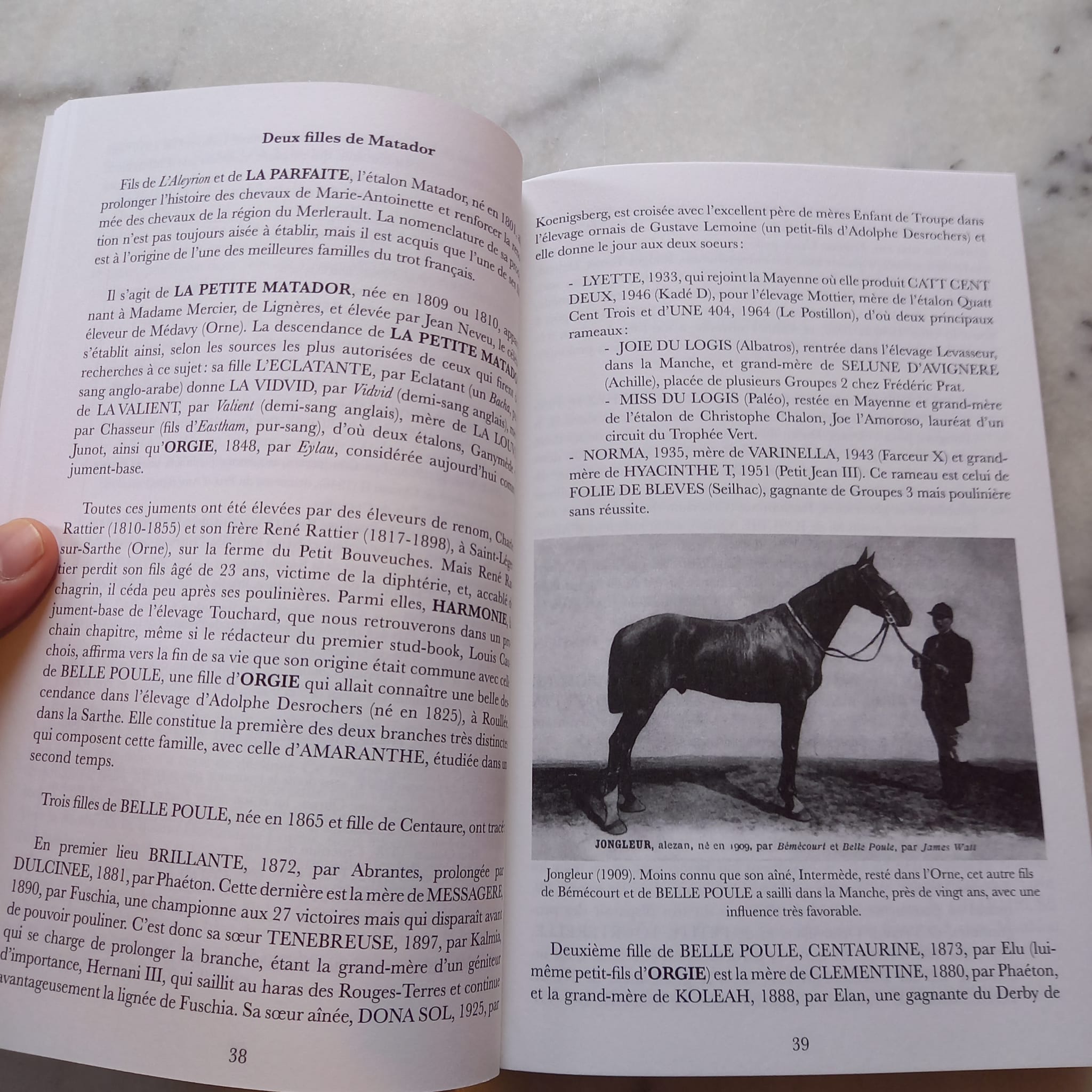 Les familles du trotteur français d’Eric Bonvallet propose une vaste exploration historique et généalogique de l’élevage du demi-sang puis du trotteur français, en privilégiant un angle rarement étudié : celui des familles maternelles. L’ouvrage montre que la formation du trotteur résulte d’un long processus d’assemblage de races et de variétés très diverses, marqué par des choix politiques, militaires et économiques. Les familles maternelles — environ 300 aujourd’hui — structurent l’élevage depuis la fin du XVIIIᵉ siècle et permettent de relier les chevaux contemporains aux juments-bases fondatrices. Leur étude met en lumière l’action déterminante d’éleveurs visionnaires, de dynasties locales et de régions clés, notamment l’Orne, la Manche et le Calvados, foyers historiques de la discipline. L’ouvrage insiste sur la difficulté de toute classification, tant les lignées évoluent, disparaissent ou renaissent selon les contextes, les croisements et l’effet du milieu. Il retrace également le rôle d’étalons majeurs — Conquérant, Young Rattler, Sylvio — ainsi que l’impact des importations anglaises puis américaines sur la morphologie et l’aptitude au trot du cheval français. S’appuyant sur des sources anciennes et contemporaines, ce premier volume entend clarifier l’histoire complexe et foisonnante d’un élevage inscrit dans le temps long.